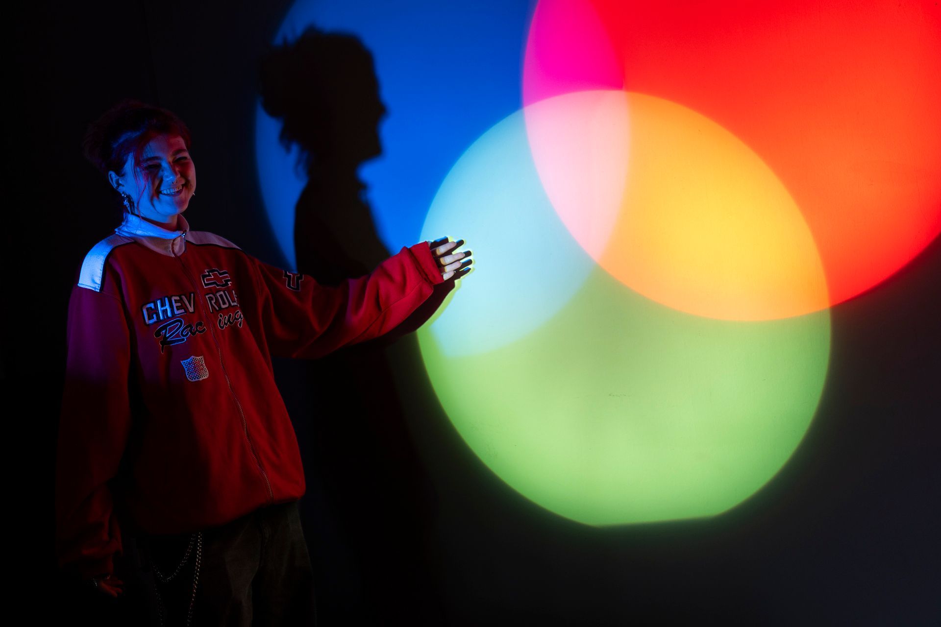 Im Farb-Licht-Studio lernen die Schülerinnen und Schüler, Licht bewusst einzusetzen, Farbwirkungen zu analysieren und Lichtkonzepte für gestalterische und bauliche Aufgaben zu entwickeln.