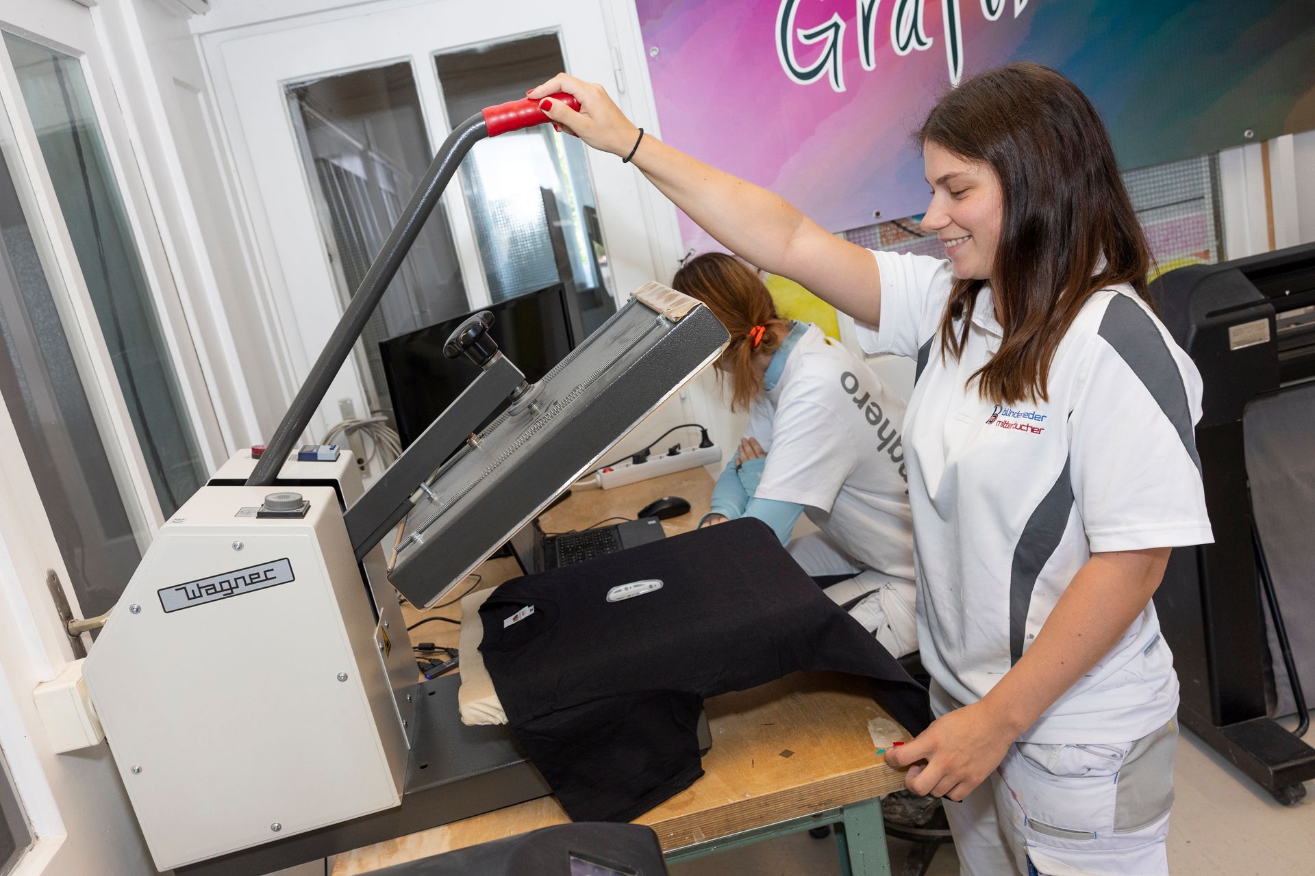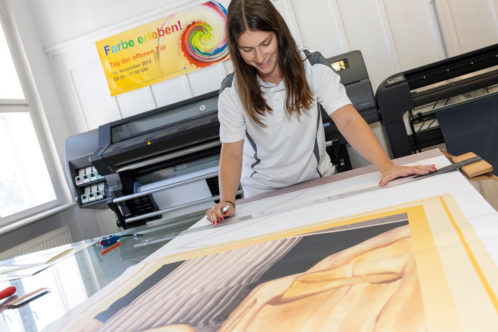 Fokusbereiche in unserem Grafikatelier Haidhof: Planung und Design im visuellen Kreativraum; Experimentieren und Arbeiten mit Form, Farbe und Schrift; Objektumsetzung in der Medienwerkstatt; Faszination für das traditionelle Handwerk der Schilderherstellung durch modernen Technikeinsatz und neue Herausforderungen. Dies bedeutet, in einem gestalterisch innovativen Umfeld tätig zu sein.